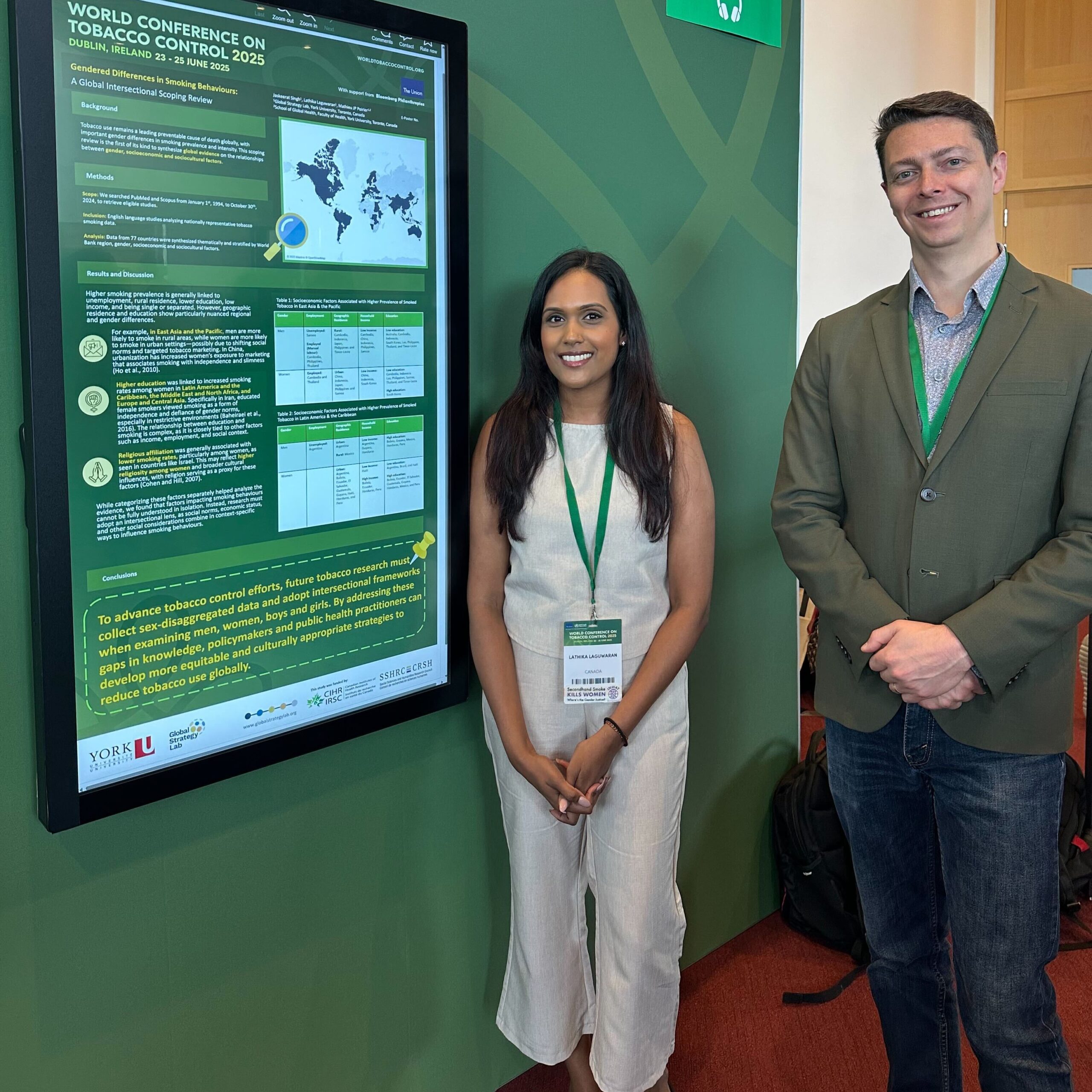 Lathika Laguwaran and Mathieu Poirier also featured a poster presenting findings from our upcoming study on gendered differences in smoking behaviours. This study will be the first of its kind to synthesize global evidence on the relationships between gender, socioeconomic, and sociocultural factors.