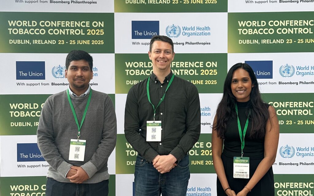 From June 23 to 25, GSL Researchers Lathika Laguwaran, Mehedi Hasan Rasel, and Director Mathieu JP Poirier attended the World Conference on Tobacco Control.